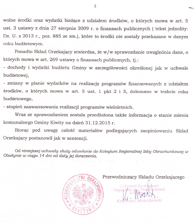 Uchwała Nr RIO.VIII-0120-159/16 SKŁADU ORZEKAJĄCEGO Regionalnej Izby Obrachunkowej z dnia 4 kwietnia 2016 roku