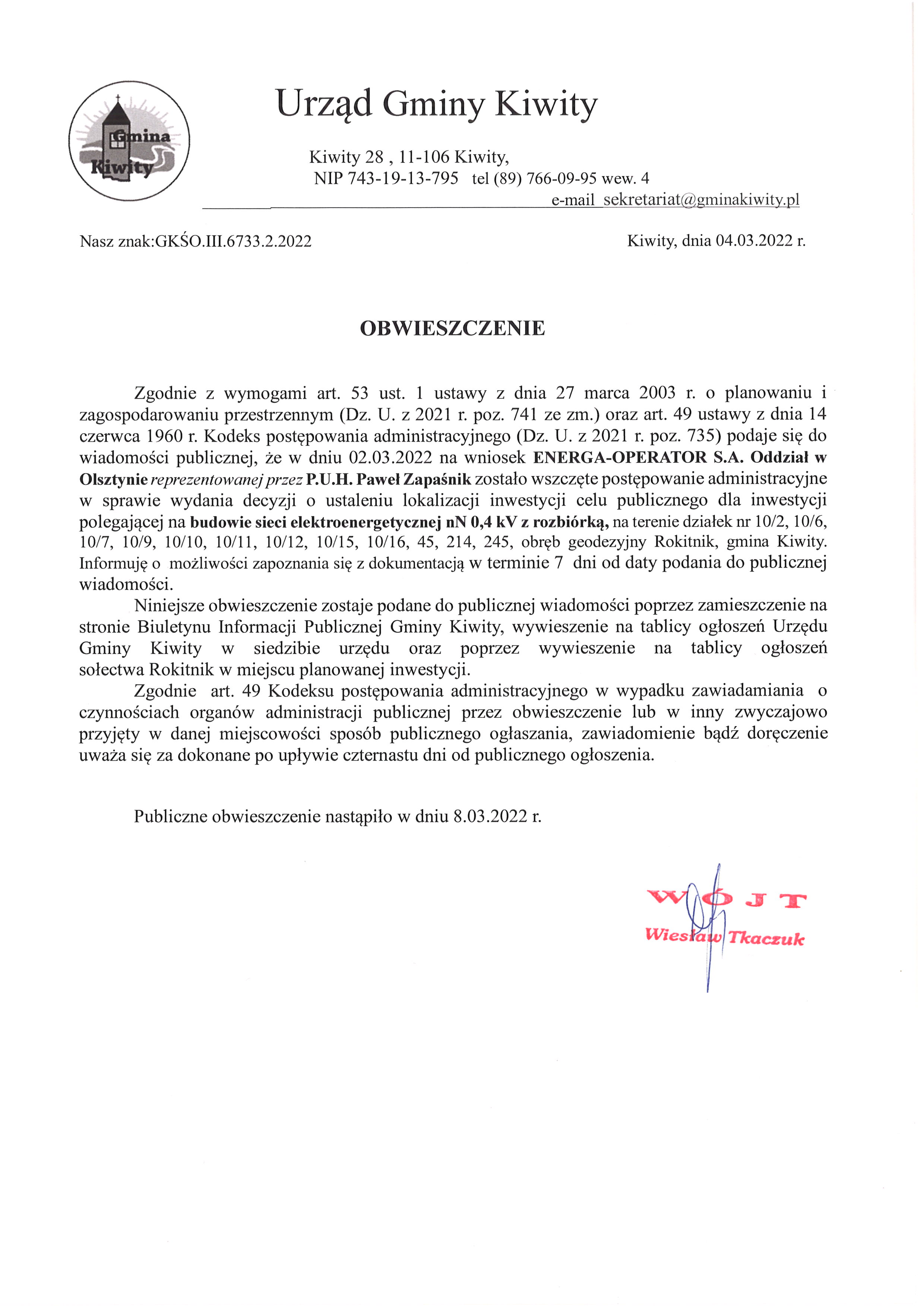 Wersja obowiązująca z dnia 08-03-2022 14:07:44 Drukuj Obwieszczenie - budowa sieci elektroenergetycznej Załączniki 3349_001 format: image/jpeg, rozmiar: 623.2 KB, data dodania: 08-03-2022 14:07:44