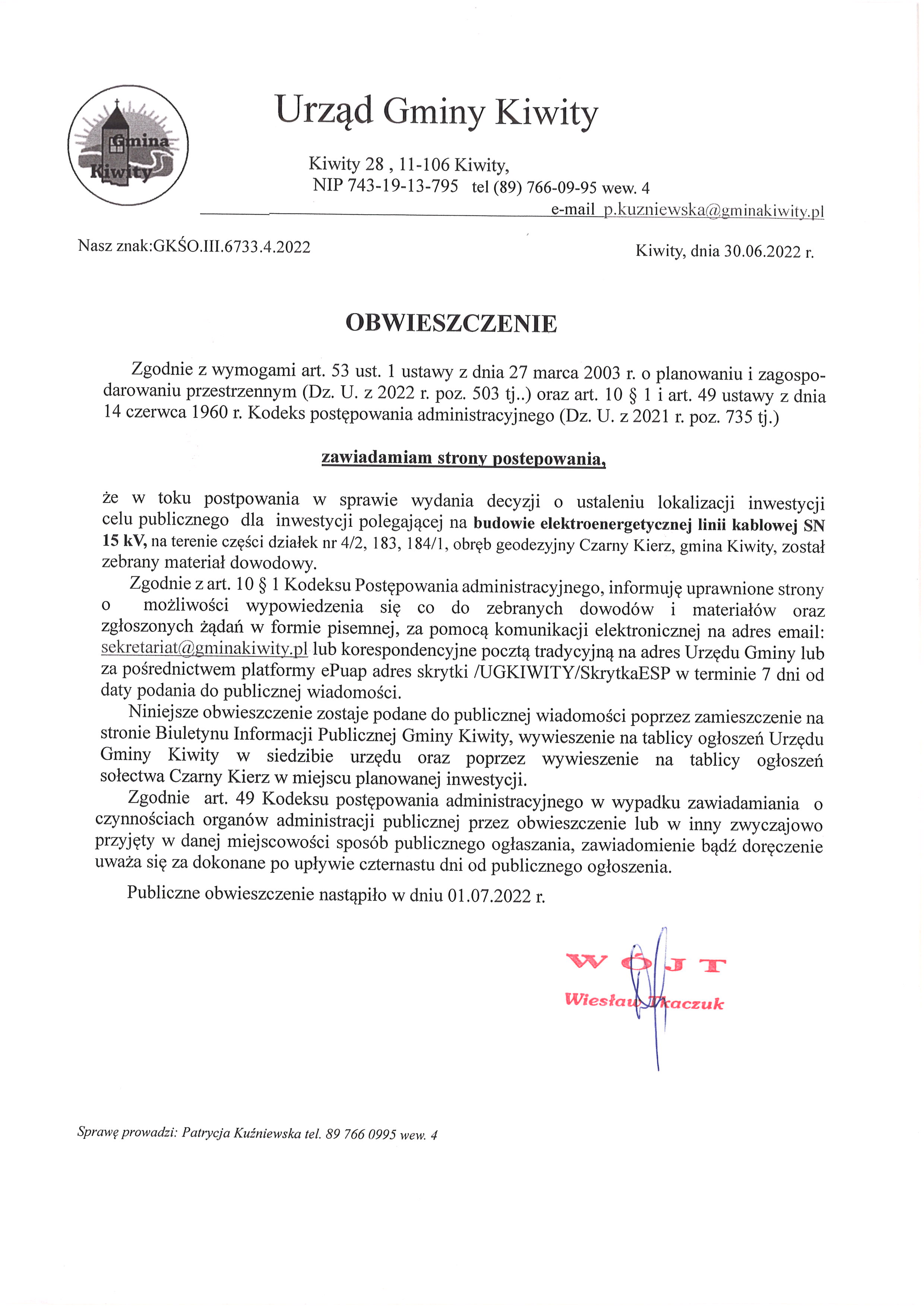 Wersja obowiązująca z dnia 30-06-2022 14:09:32 Drukuj Obwieszczenie o zebranym amteriale dowodowym w sparwie wydania decyzji celu publicznego dla budowy linii elektroenergetycznej w Czarnym Krzu Załączniki obwieszczenie o zebranym amteriale dowodowym w sparwie wydania decyzji celu publicznego dla budowy linii elektroenergetycznej w Czarnym Krzu format: image/jpeg, rozmiar: 716.56 KB, data dodania: 30-06-2022 14:09:32