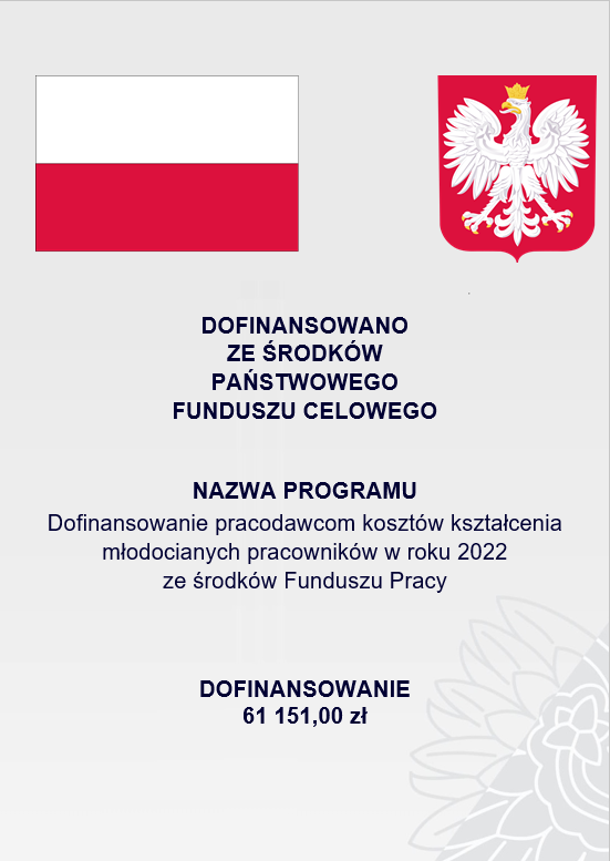 Wersja nieobowiązująca z dnia 18-11-2022 11:53:30 Drukuj Dofinansowanie pracodawcom kosztów kształcenia młodocianych pracowników w roku 2022 ze środków Funduszu Pracy Załączniki dofinansowanie format: image/png, rozmiar: 98.81 KB, data dodania: 18-11-2022 11:53:30 Wersja nieobowiązująca Strona może zawierać nieaktualną treść i załączniki. Możesz pozostać na tej stronie lub przejść na wersję z obowiązującą zawartością. Nie pokazuj ponownie Pozostań Przejdź do wersji obowiązującej
