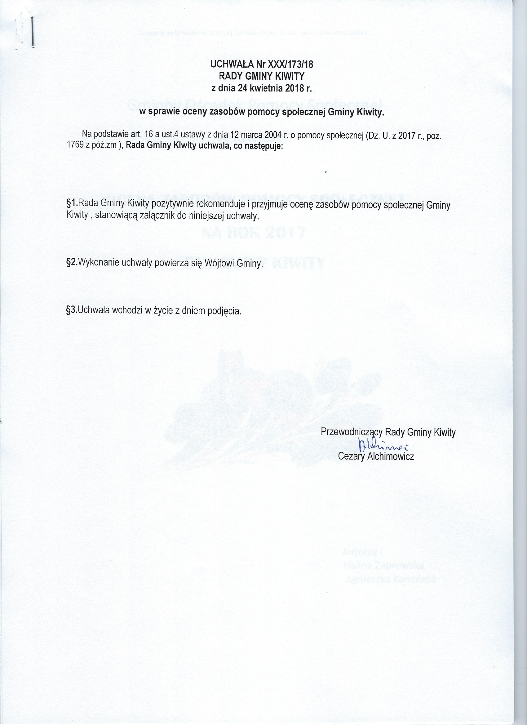 Uchwała w sprawie zasobów pomocy społecznej Gminy Kiwity