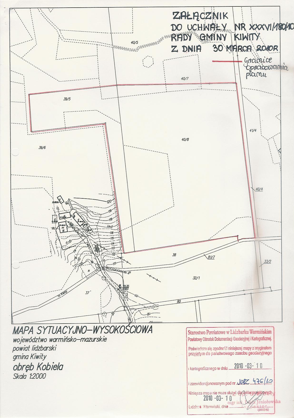 § 1. Przystępuje się do sporządzenia miejscowego planu zagospodarowania przestrzennego Gminy Kiwity w obrębie geodezyjnym Kobiela w celu przeznaczenia terenu pod kopalnie kruszywa naturalnego.